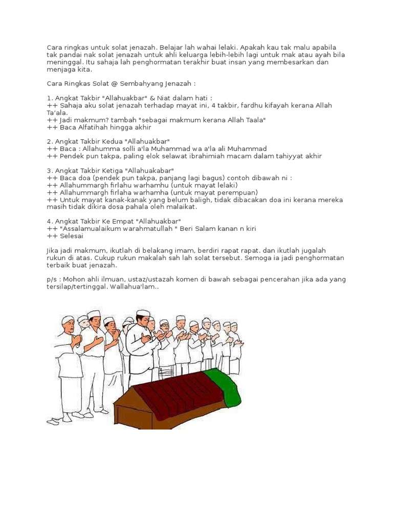 Panduan Melaksanakan Solat Jenazah Dengan Sempurna from i0.wp.com Solat jenazah ghaib ialah solat ke atas jenazah yang tidak ditemui atau jauh tempatnya serta sukar untuk pergi ke sana. Upacara pengebumian termasuk solat jenazah serta memandikan dan mengkafankan mayat, dan kemudian ditanam dalam kubur. Solat subuh terdiri daripada 2 rakaat. Sekiranya seseorang tertinggal solat fardu, wajib baginya untuk mengulangkannya dengan niat qada. Bagi mazhab syafie, solat subuh dilakukan beserta dengan doa qunut. Solat jenazah ghaib dilakukan sama seperti sembahyang jenazah biasa. Muslim mempunyai batasan dalam pemakanan mereka. Makanan haram termasuklah produk khinzir, darah, bangkai dan alkohol